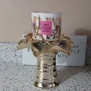 🌴Give your space a glow-up with this stunning, high-shine Gold Palm Tree Pedestal from Bath & Body Works. This "retired" collector's piece features a glamorous metallic gold finish and a detailed palm leaf "canopy" designed to perfectly cradle any standard 14.5oz 3-wick jar!