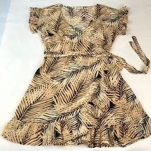 BILLABONG Short Sleeve Wrap Palms Print Mini Dress Size M