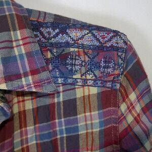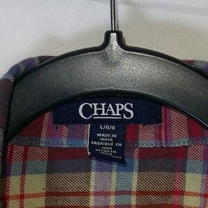 Chaps Womens Large Plaid Flannel Button Down Shirt Embroidered Shoulders Multi