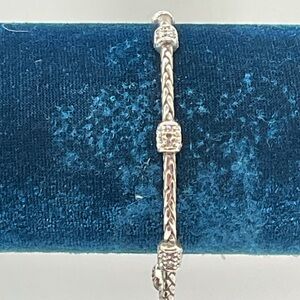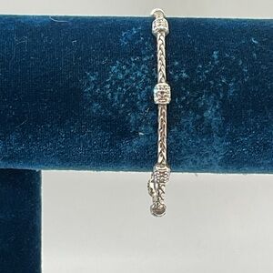 Stylish silver bracelet featuring crystal details. Adds a touch of elegance.