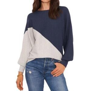 Vince Camuto Colorblock Assymetric Dolman Sleeve Sweater Blue Gray Size L