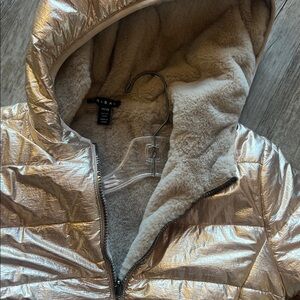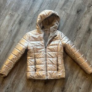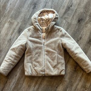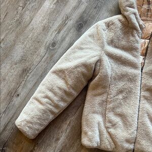 Keep warm and stylish with this cozy cream hooded jacket. Perfect for chilly days. Reversible and versatile! Like new!