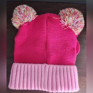 Stay warm and stylish with this delightful Disney matching set, featuring a vibrant pink knit hat and mittens. The hat is adorned with a fluffy multi-colored pom-pom, adding a playful touch to your winter wardrobe. Perfect for chilly days, this set combines comfort and charm effortlessly.