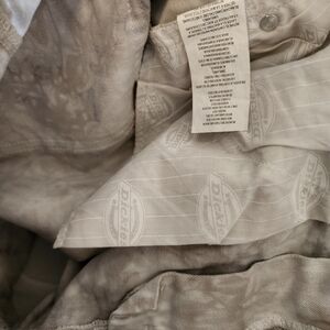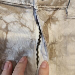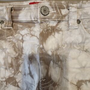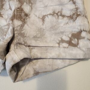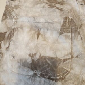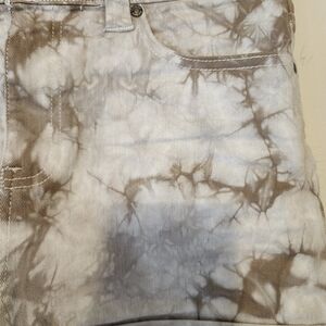 DICKIES Cream Tan Tie Dye Denim Shorts Cuffed Hem Stretchy Festival Size 11 / 30