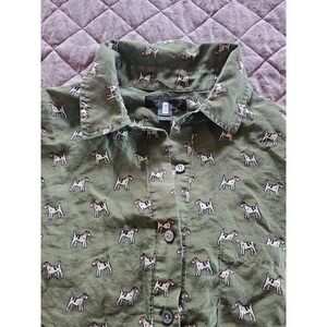 J.Crew Terrier Dog print Green Silk Cotton Blend Maximalist Preppy Shirt sz 2