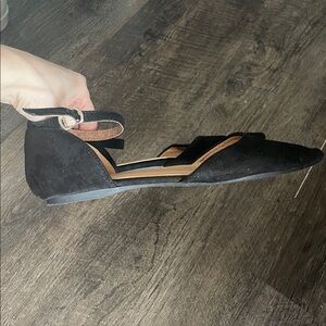 Step out in style with these elegant black ankle strap flats. Perfect for any occasion, they offer both comfort and sophistication. I Added a cushion for comfort on the heel so it does not rub against. Can be removed.