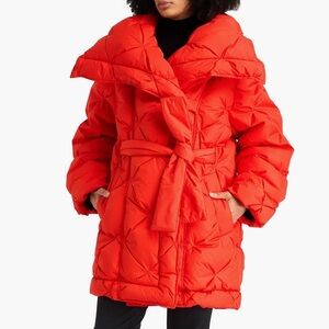 Goldbergh Tomato Red Lauren belted quilted shell down coat
