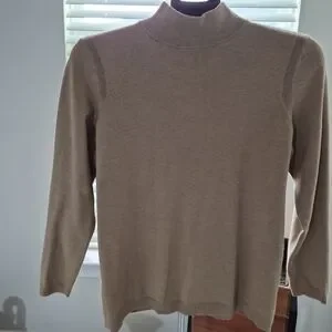 Talbots Petites Camel Tan Mock Neck Knit Sweater - Size LP