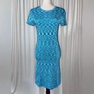 Michael Kors Turquoise Space Dyed Patterned Knit Midi Dress