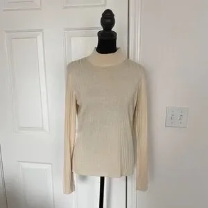 Liz Claiborne Silk Ivory Ribbed Turtleneck Sweater