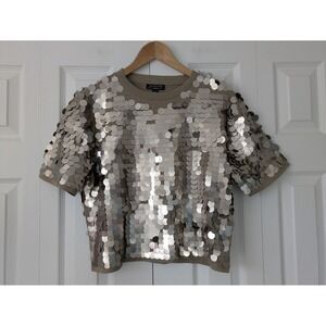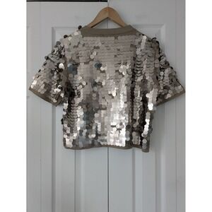 J. Crew Sequin Embellished T-Shirt Sz S Beige Silver NWD CD116 - Missing Sequins