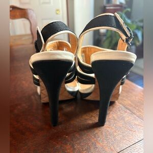 L.A.M.B. Black and White Geometric Heels. Size 8