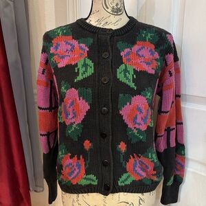 Vintage Gallagher Rose/Floral Color Block Button Down Cardigan Sweater