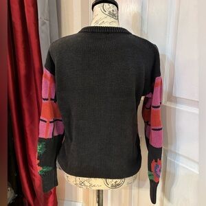Vintage Gallagher Rose/Florql Color Block Button Down Cardigan Sweater, size Medium to Large. In very Vintage and faded condition. The Black is very faded, and more faded than in the pictures. The fading just gives authenticity to it being a vintage item. It is made with 55% Ramie, 45% Cotton. This sweater had some larges holes. All holes have been repaired and you can’t tell on the outside that it has been fixed: If I find anymore weak spots, I will tighten those up by hand sewing them. Since sweater is missing the size tag, I am not sure of exact size of this sweater. So going by vintage measurements to assign it a size. Please double check the measurements to determine the correct fit for you. It is a fun sweater and I was happy to repair it and give it new life! Hand wash only, lay flat dry. It originally had shoulder pads but they were removed.