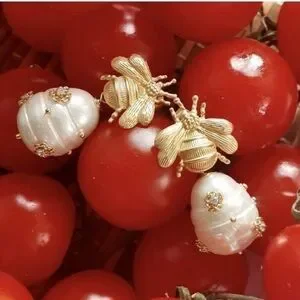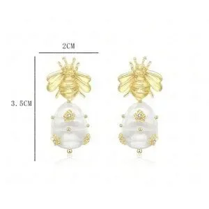 Noble Trendy Vintage golden Cute bee natural pearl