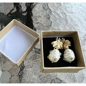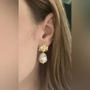 Bee Cultured Pearl Drop Earrings Vintage Bee Pearl Pendant Hypoallergenic