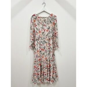 Eliza J Floral Long Sleeve Tiered Midi Dress