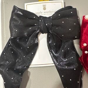 Simply Southern Red and Black Hair Bows with Glitter and Pearls