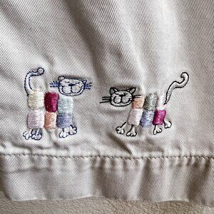 Vtg Cat Embroidered Cropped Pants 14W CJ Banks Capri Tan Khaki Whimsical
