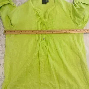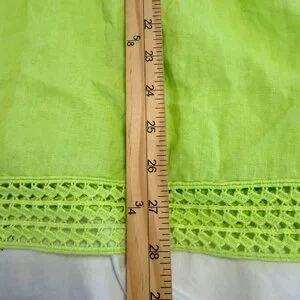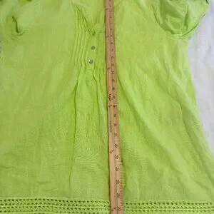 Rafaella Womens 100% Linen L Lime Green Lagenlook V-Neck Tunic Top Beach Summer