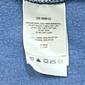 Blue and gray, Sherpa fleece, full zip jacket with stand up collar. Zipper pockets, clip button chest pocket and zipper vented underarms.