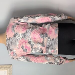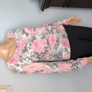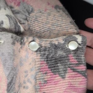 Add a touch of feminine charm to your wardrobe with this beautiful Talbots cardigan. Featuring a delicate all-over rose print in shades of pink, blush, and charcoal gray against an ivory background, this sweater is perfect for layering through the seasons.
