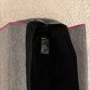 Stylish Dyson accessory pouch. Gray fabric with pink stitching. Perfect for organizing essentials.