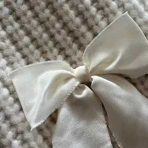 Elegant cream alpaca blend sweater adorned with charming bow accents. Perfect for a stylish touch.