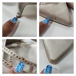 Adrianna Papell Boutique Taupe Tan Pumps Slingback Heels with Rhinestone Jewel Studs