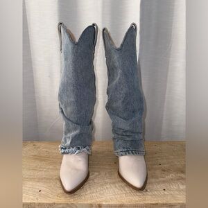 steve madden boots, denim cowboy boots, western boots women, frayed hem boots, slouch boots, cowgirl boots, festival boots, statement boots
