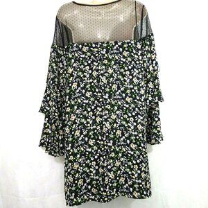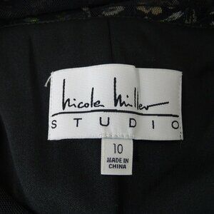 Nicole Miller Studio Dress Women Size 10 Black Floral Tiered Ruffle Sleeve