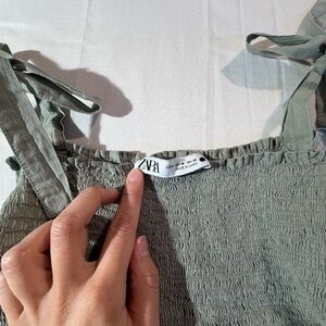 ZARA Sage Green Eyelet Maxi Dress Smocked Tie Shoulder Boho Cottagecore M