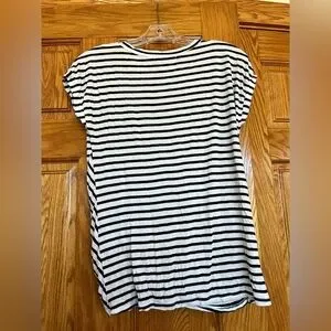 Chic and stylish black and white striped women's top. Perfect for casual outings or a day at the office.