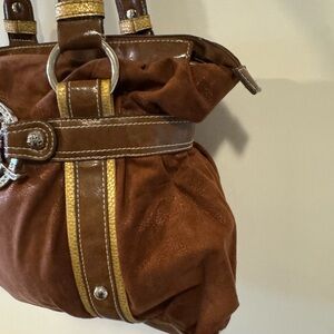 Kathy Van Zeeland Brown Suede and Vegan Leather Purse Handbag Shoulder Bag Purse
