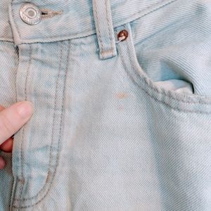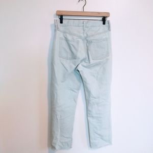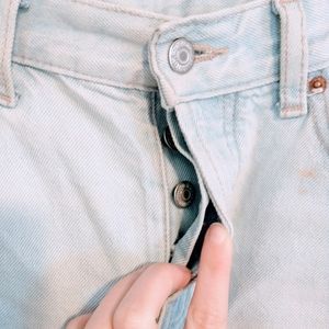 Old Navy slouchy straight high rise light wash button fly jeans. Has a couple of