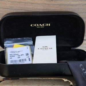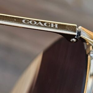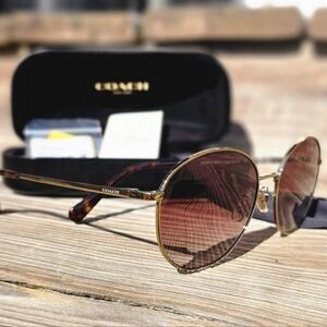COACH WIRE FRAME GLASSES. GRADIENT LENSES WITH COACH ON THE ARM OF SUNGLASSES. FULL INCLUSION WITH REPLACEMENT NOAE GUARDS.