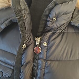 Coat is in good functioning condition. Shows some signs of wear. Inside cartoon wash tage was restitched back on, there is some tarnishing at hardware, and minor scuff mark notated in picture. All zippers and snap buttons function properly.