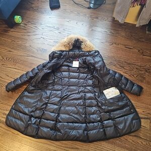 Hood: Features a hood, which can be detached. Trimmed with real fur. Hermifur.