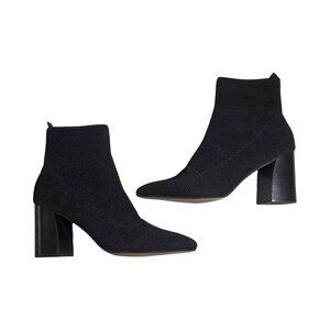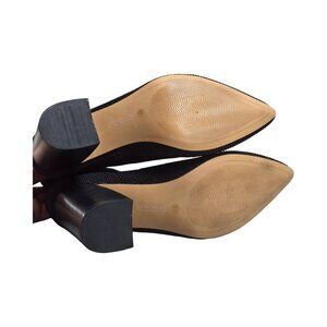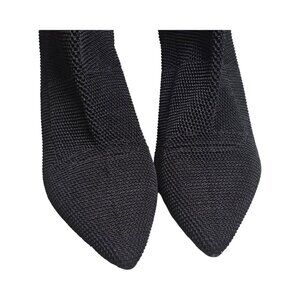Details: Stretchy fabric, pull on, block heel, pointed toe.