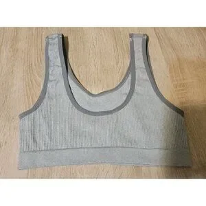 Lucky Brand Seamless Soft Ribbed Sports Bra Grey Ribbed Athleisure Size L