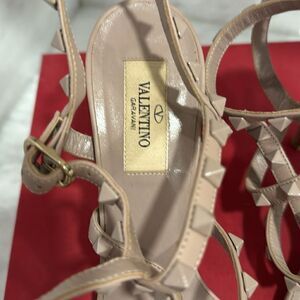 Valentino Garavani Poudre tan nude blush Rockstud T-Strap Sandal tonal heels 38