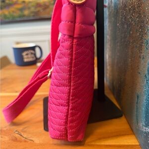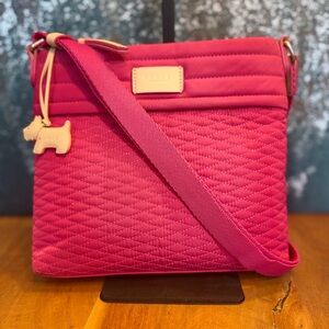 Add a pop of color to your daily routine with this vibrant Viva Pink crossbody! Perfectly blending style and functionality, this bag features a chic diamond-quilted design and the iconic detachable Radley Scottie dog charm.