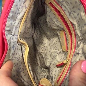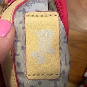 Features: Adjustable nylon strap, leather accents, signature dog charm, and interior pockets for organization.