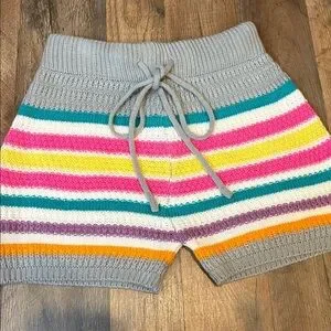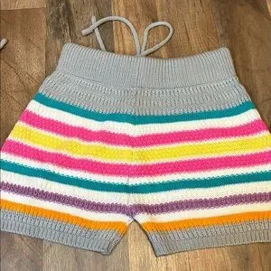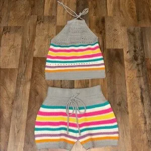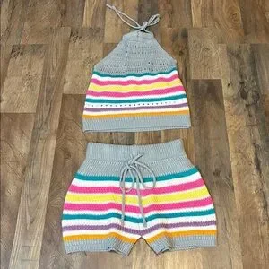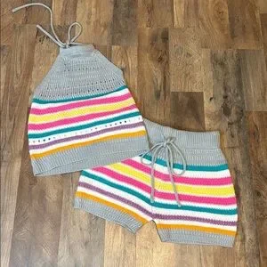 2 Piece Crochet Halter & Shorts Outfit Candy Color Stripes Small/Medium Juniors