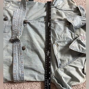 Ralph Lauren Polo Jeans Co. women’s belted trench coat in a beautiful faded light blue wash.
