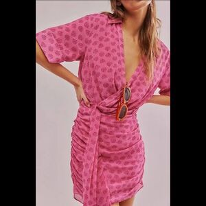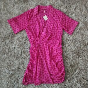 Free People Silver Honey Mini Wrap Dress Shell Print Berry Combo Pink Size Large