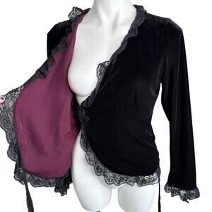 Vintage Y2K ICE Black Velvet Lace Wrap Blouse Top Women’s S Romantic Goth