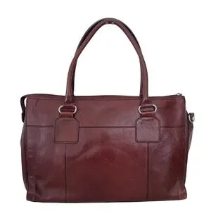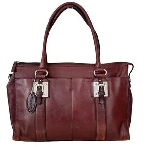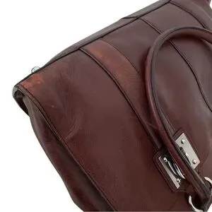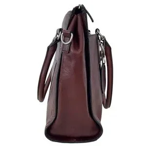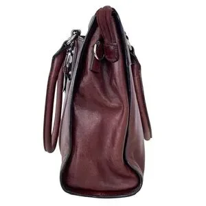 Wilsons Leather Computer Bag / Attache Shoulder Bag in Oxblood Red/Brown 100% Genuine Leather with Silver hardware. Double top handles, outside pocket for quick keys and phone find.