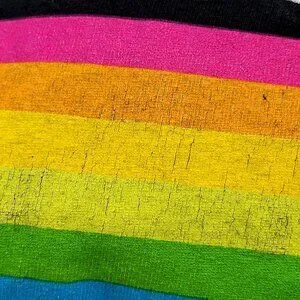 Polaroid Long Sleeve Graphic Tee With Rainbow Stripes On Back & Sleeves - 4X