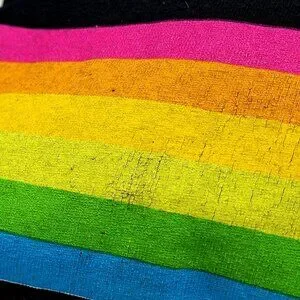 This vibrant Polaroid long sleeve tee features iconic rainbow stripes and bold branding, designed for casual style and comfort.